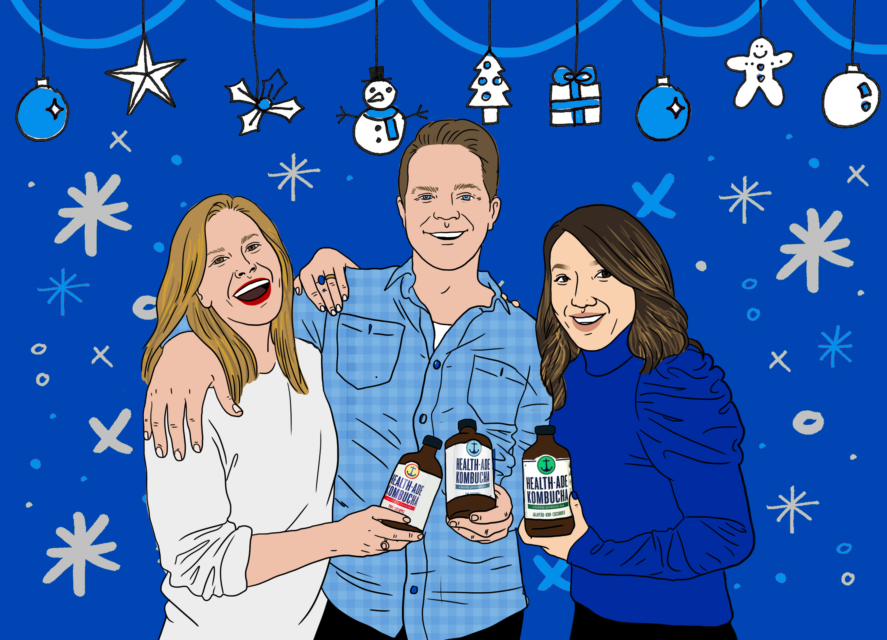 Commissioned illustration of the founders of everyone’s favorite kombucha Health-Ade!